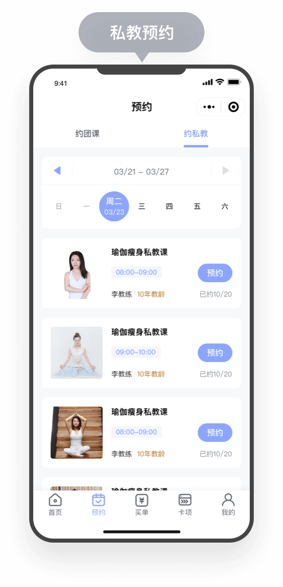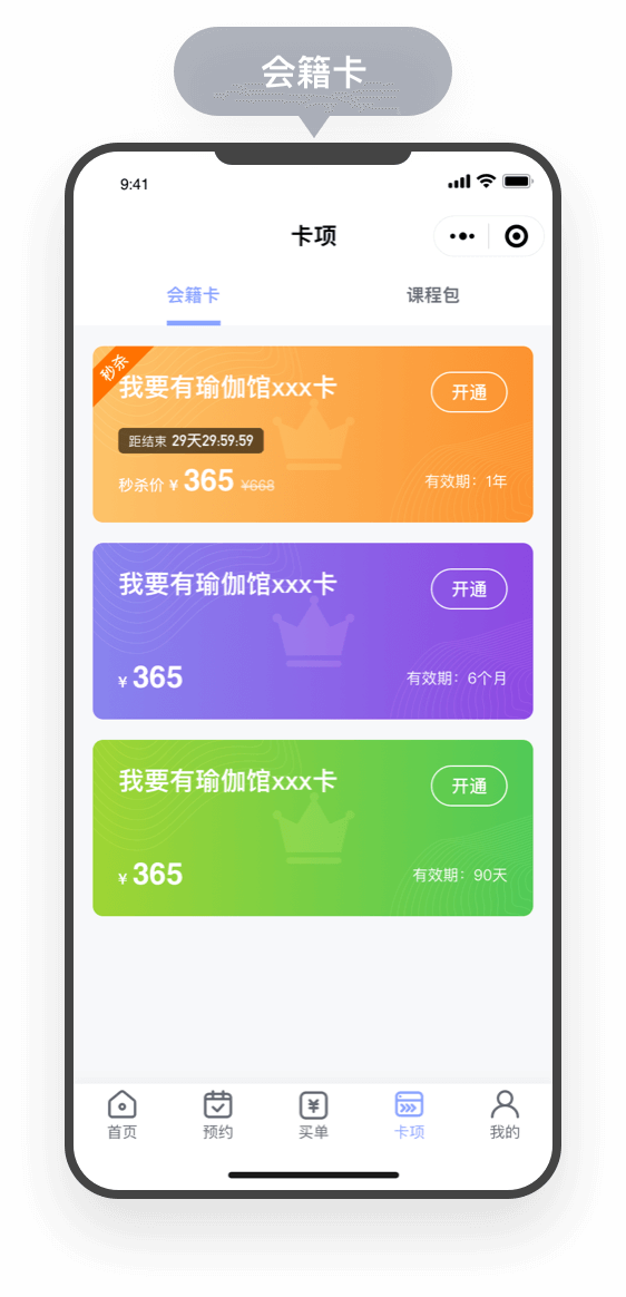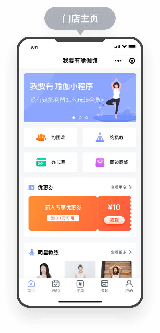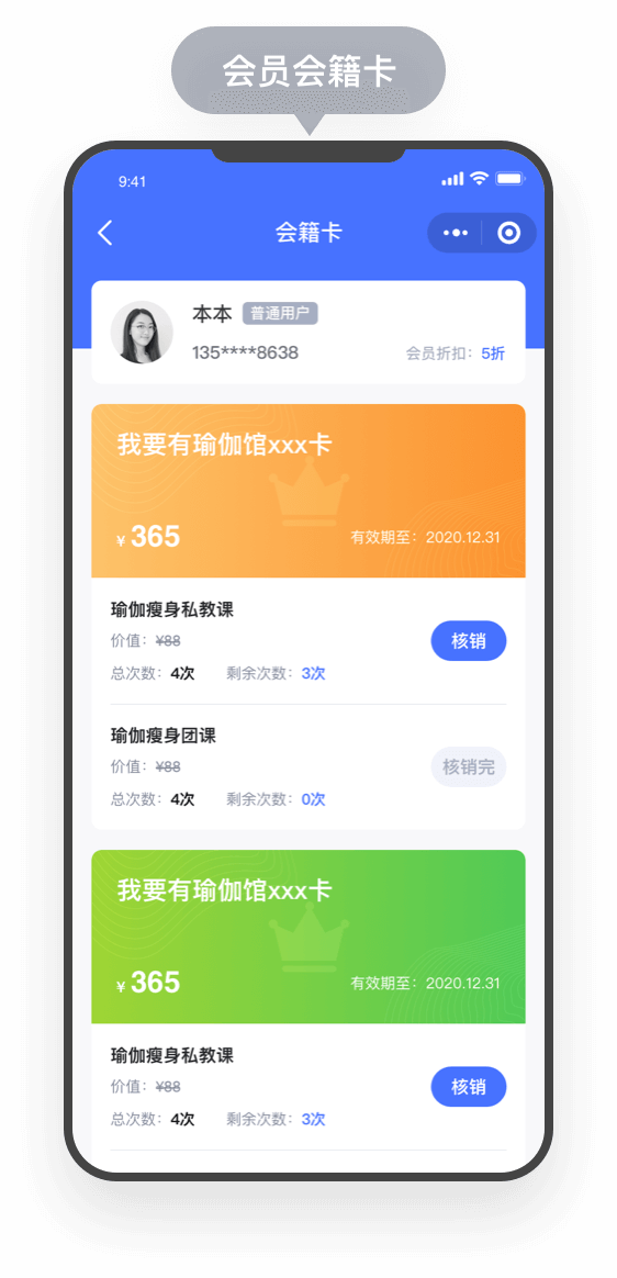 利用微信会员卡小程序沉淀私域流量 裂变获客,不只是预约,更重要的是帮你赚钱,打造智慧运动、瑜伽、健身馆经营模式,系统含有会员余额、积分、优惠券,抢购活动,次卡套餐,预约服务及在线商城等。