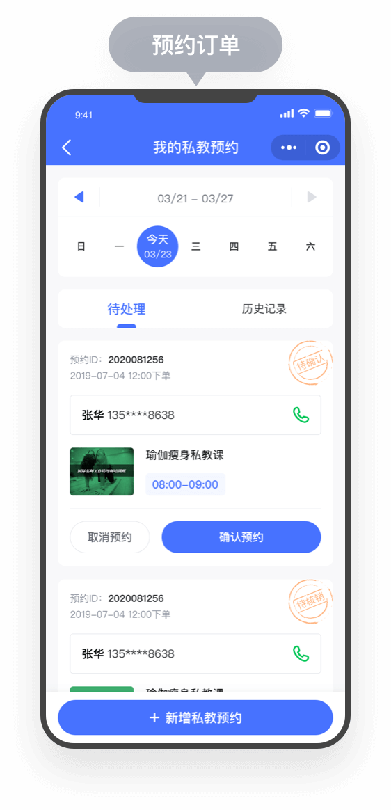 (PC商户后台/微信小测程序),预约进度一目了然,方便查看,提前安排工作